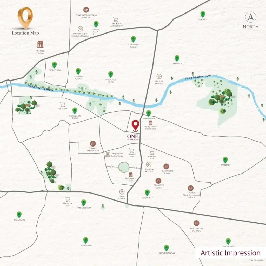 Mantra One Residency – 1 Residences is situated in the premium Magarpatta area in East Pune, which is well-connected to IT parks, business hubs, top schools, healthcare facilities, and lifestyle destinations.